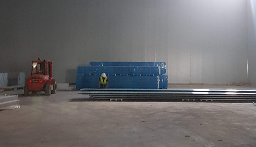 | Trabajos realizados: Montaje de Panel Frigorífico para cámaras de congelación de -25º y estancias de temperatura positiva, instalación de Plataformas hidráulicas de muelles, Abrigos, Puertas Seccionales, Puertas Frigoríficas y Puertas Técnicas y Protecciones | |